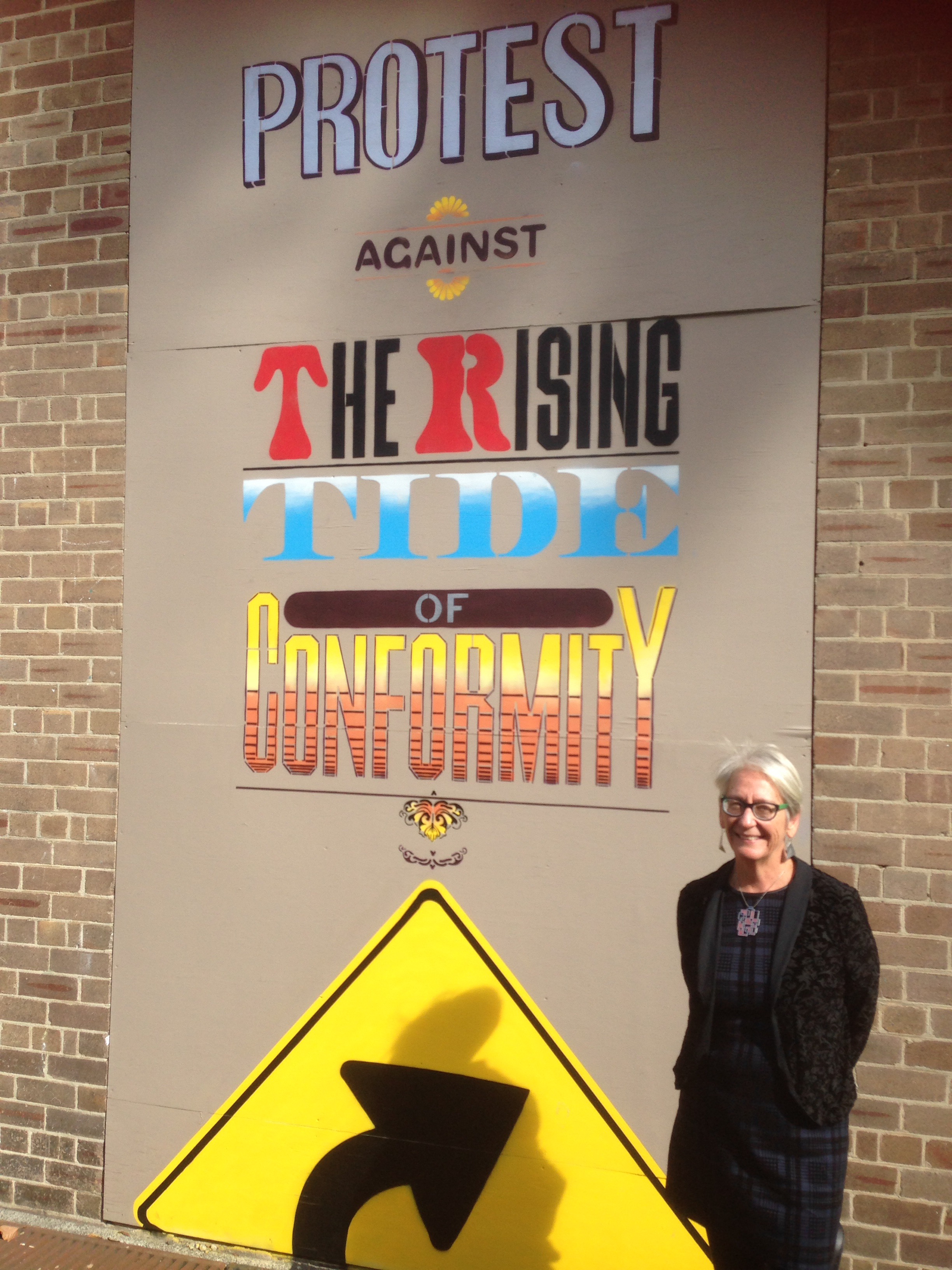 National Art School degrees were conferred today. The Emerging Artist whipped her cap and gown off before I could take a photo, but consented to be snapped before leaving the school.