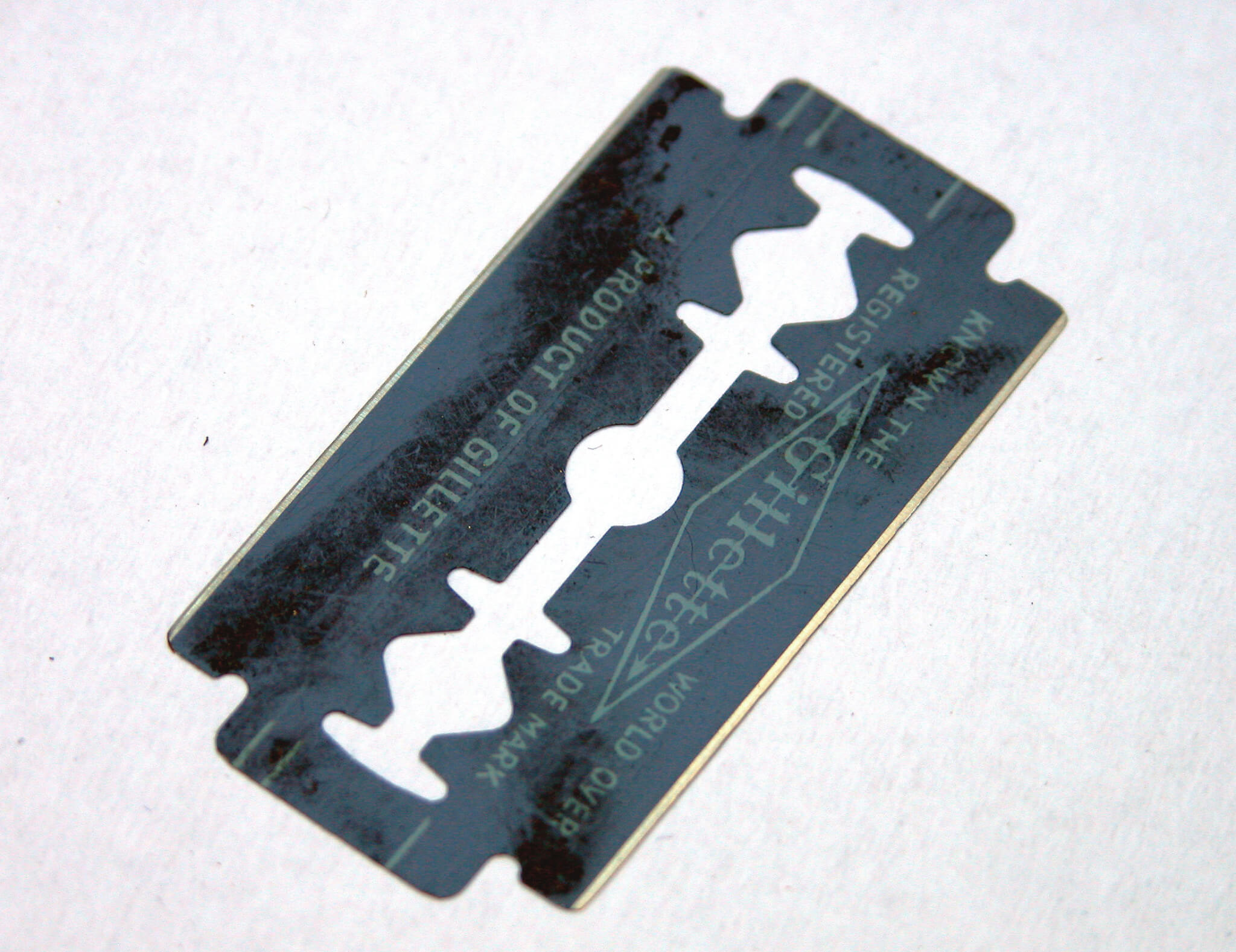 A human comforter would have said something (‘It’s all right, ‘You’re OK,’ ‘This will pass’ …). The razor blade’s ‘mouth’ had no words, its message is conveyed, recorded, imprinted, by action.