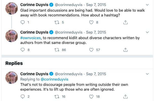 If this had been a live event, I would have been hoping someone would ask about ‘own voices’, a term they used to describe their books. The term is close to self-explanatory, and I’d heard it vaguely in the past, but it sounded as if there was history attached to it. In the absence of a Q&A session, I went online, and found that #OwnVoices is a hashtag originated in 2015 by a Dutch writer of young adult science fiction and fantasy novels, Corinne Duyvis (a longish interview with her about the hashtag is at this link).