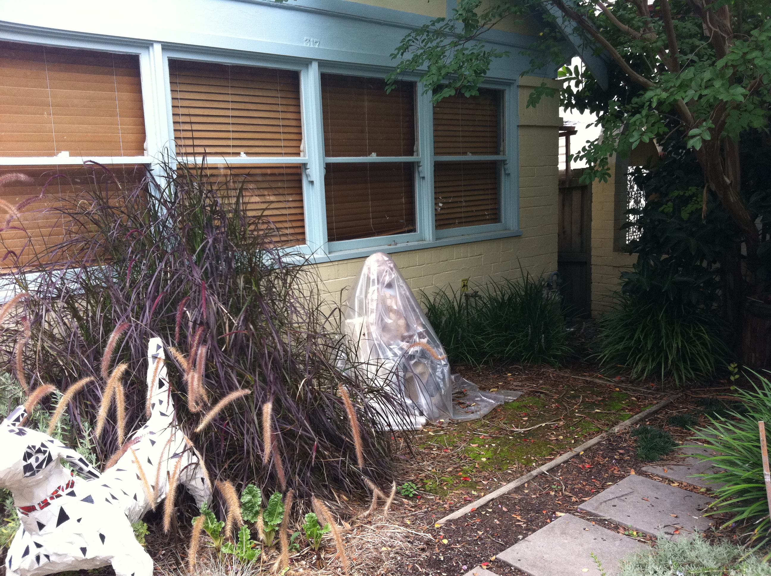 Four days after the event, the new house almost feels like home. We’ve enjoyed the kindness of friends: one made us dinner and brought it around on the evening of the move; three lots of friends who live on this side of Parramatta Road have just dropped in, a brilliant way to make us feel like part of a neighbourhood. We live much closer to the street here, so I’m entertained by the passing parade as I sit at my desk– many family groups, as the Annette Kellerman Aquatic Centre is close by. Penny’s dog sculpture is now much more obvious to passers-by: a schoolgirl offers her a lick of her iceblock; a small child tells her father, ‘It’s only a pretend dog.’