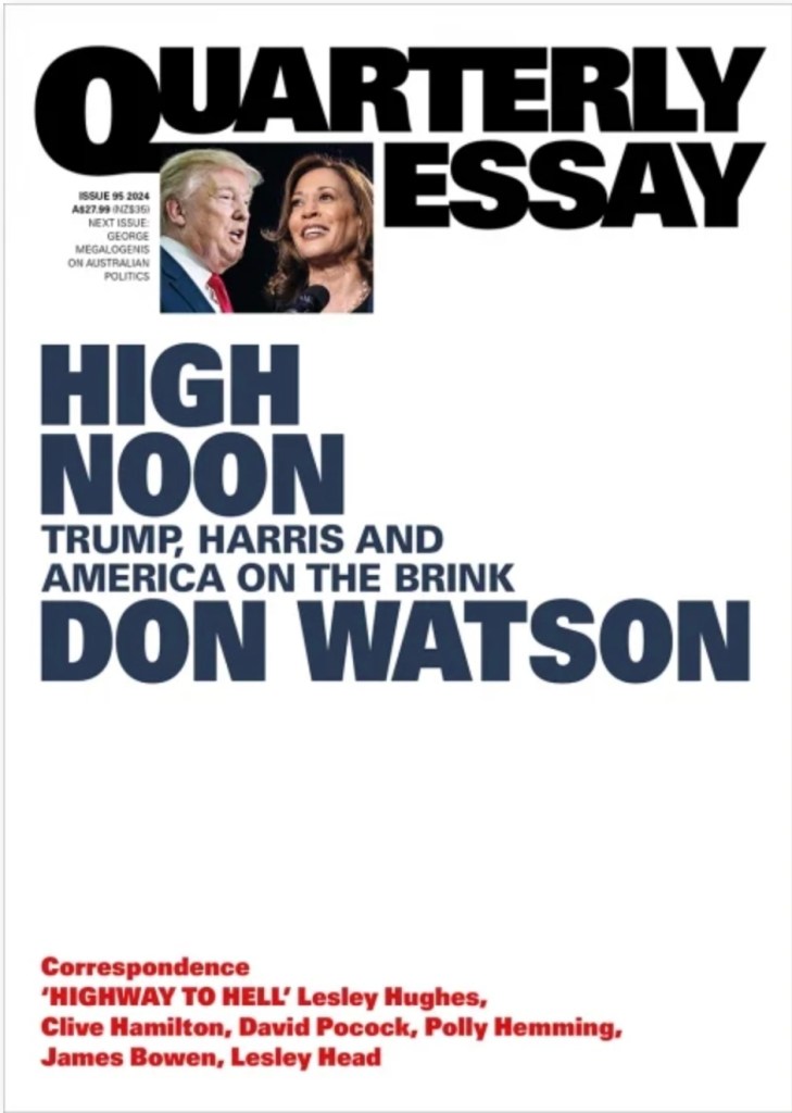 Correspondence in Quarterly Essay 100 (The Good Fight by Sean Kelly) mostly reinforces Wilkinson’s argument. The world is not decarbonising fast enough to avoid dire consequences. Woodside’ activities aren’t helping. Peter Garrett discusses the politics. David Ritter focuses on Scott Reef, an extraordinary marine habitat that is under threat. Shane Watson and Kate Wylie from Doctors for the Environmental Australia describe the difficulties of appealing to existing laws to defend the environment.