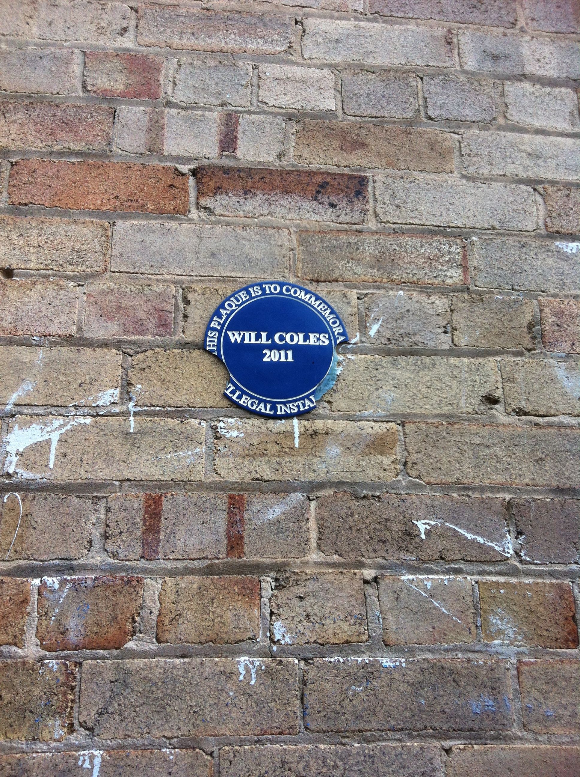 Street Plaque near the Brett Whiteley Studio in Surry Hills. An image of the intact work is here.