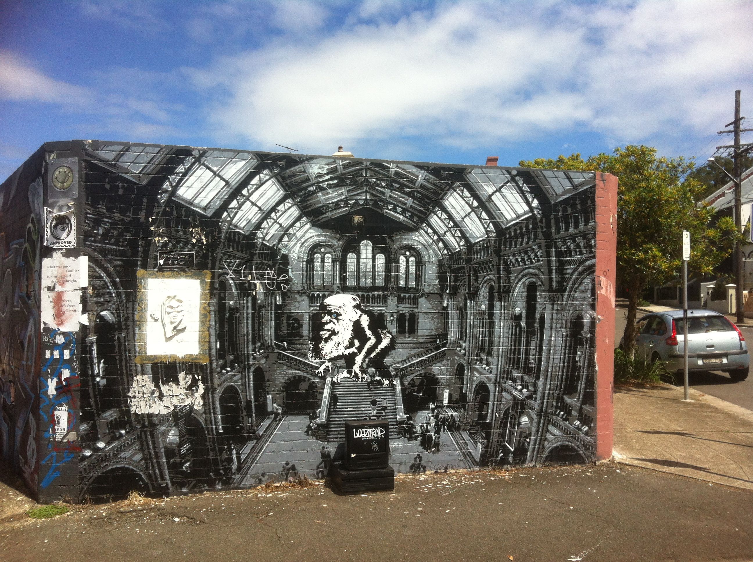 - The spectacular mural on the corner of Phillip and Gladstone Streets, Enmore. The owner of the wall welcomes street artists, asking them only to avoid the entrance to his place of business. These artists have impressively given due deference to the Will Coles work that was there before them.